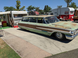 First, we bought a replacement awning fabric. It comes with a cord that fits perfectly inside our awning rail.